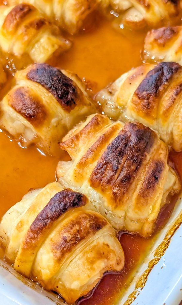 8. Remove from the oven and spoon the sauce over the apple dumplings when serving. Enjoy warm!