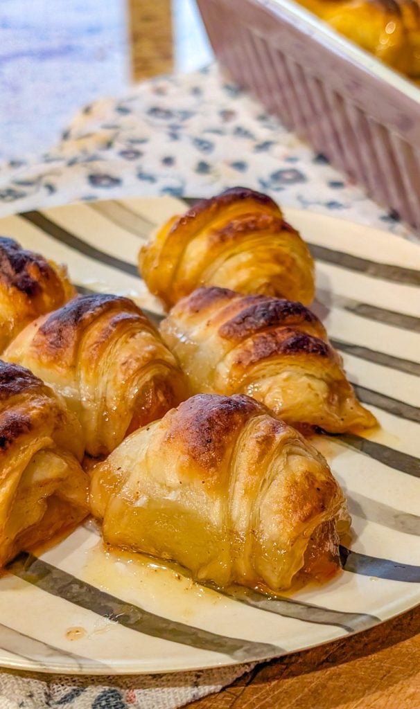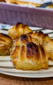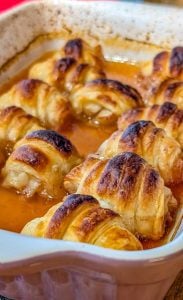 7. Bake in the preheated oven for 30 minutes, or until the crescent rolls are golden brown and the apples are tender.