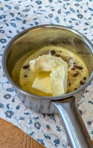 4. In a medium saucepan, combine the butter, orange juice, and sugar. Heat over medium heat until the butter is completely melted and the sugar has dissolved.