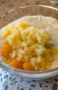 6. Gently fold in the drained pineapple chunks and 1 cup of the toasted coconut.