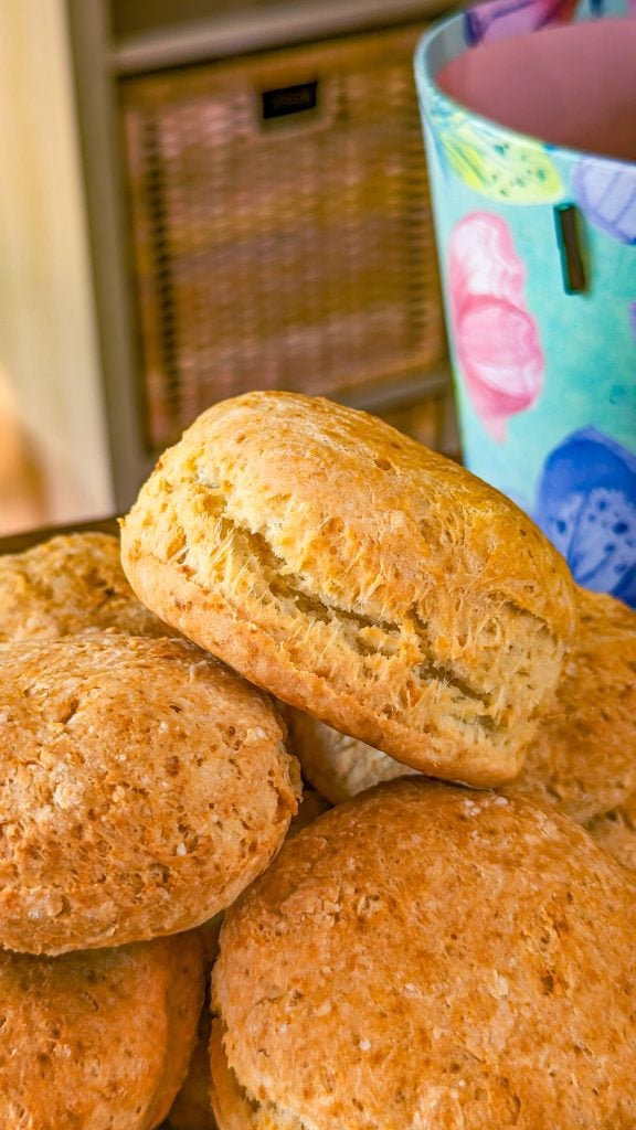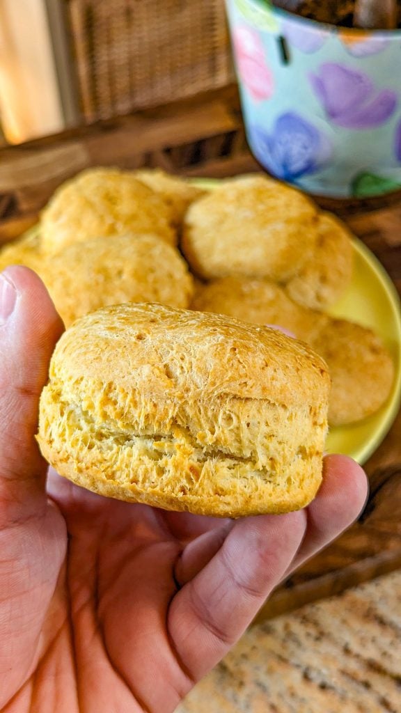 These biscuits are so easy to make and they taste so good whether you pair them with gravy for breakfast or enjoy them spread with butter and honey or jam as a sweet snack.