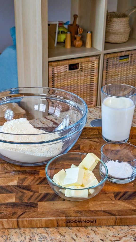 Whether you prefer your biscuits with sausage or bacon gravy ladled over them or spread with butter and jam or jelly, this recipe is versatile enough to suit any of your preferred toppings. You only need 5 ingredients for them: butter, buttermilk, flour, baking soda, and baking powder.