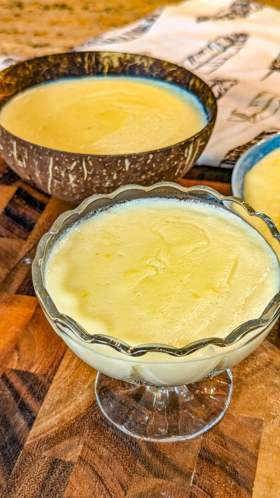 You only need 8 different ingredients to make it and it should come out perfect so long as you soak the tapioca pearl stirring a lot and also temper the eggs. It’s amazing how delicious this dessert with tapioca pearls, eggs, cream and milk is.