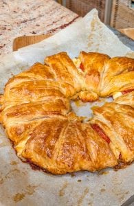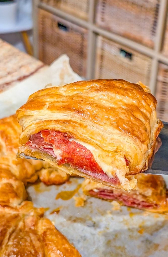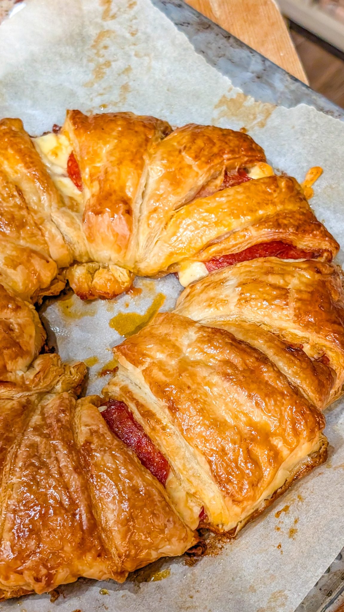 - Bake in the preheated oven for 18–20 minutes, or until the crescent dough is golden brown and cooked through.