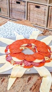 Why I love this recipe: There are so many reasons! First, it’s visually stunning. The circular shape is impressive yet simple, and pulling apart the pieces is fun for kids and adults alike. Second, the flavor is amazing—melty mozzarella, tangy marinara, and flavorful Italian meats wrapped in buttery crescent dough is pure comfort food. Lastly, it’s incredibly easy to make, requiring minimal prep while delivering maximum impact, which makes it perfect for busy weeknights or last-minute parties.