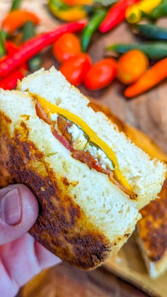 The jalapeno poppers come out quite soft but if you do prefer them with a bit of bite you can reduce the cooking time by 10 minutes. Choose your favorite Italian bread, artisan bread or thick crusty bread slices to make these grilled cheese sandwiches.