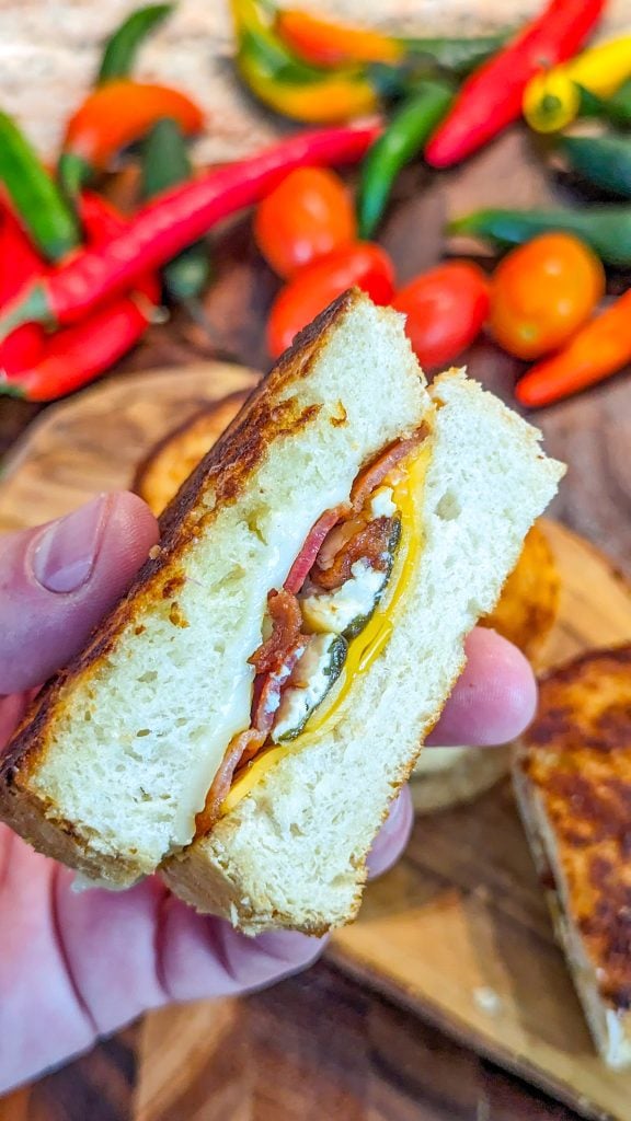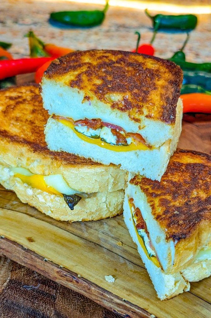 You’re going to fall in love with this fantastic jalapeno bacon grilled cheese. It just oozes so many incredible flavors. Not only do you have cheese in there, but also jalapenos and bacon for a wonderful flavor.