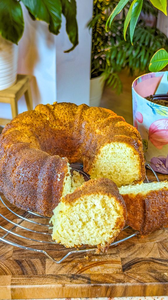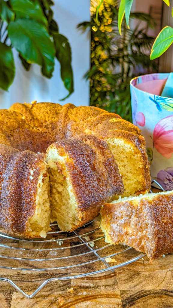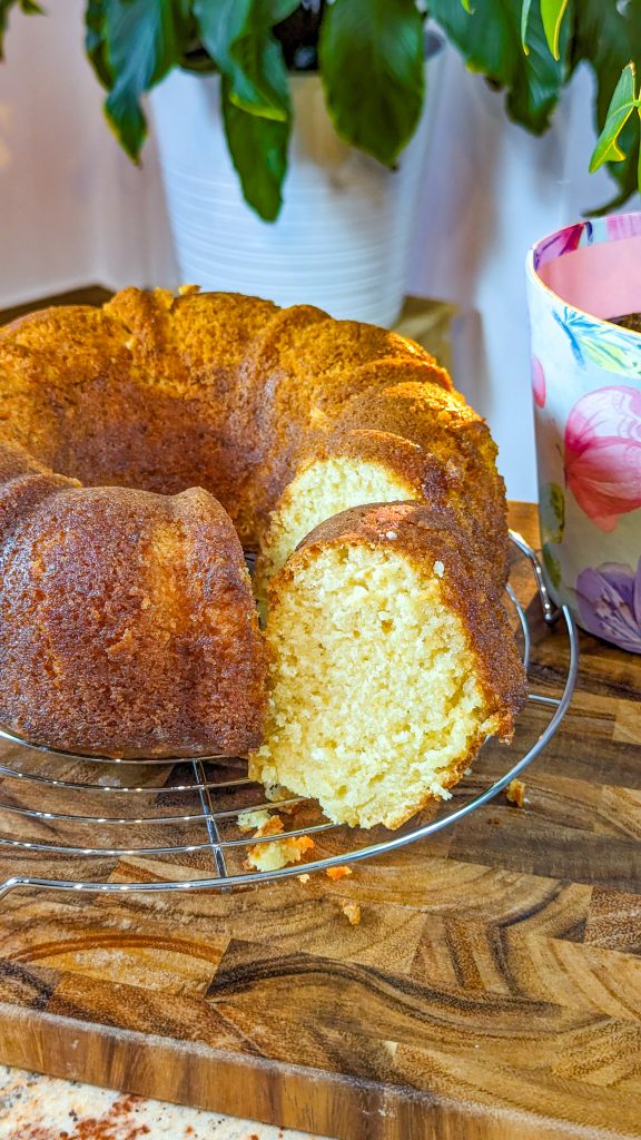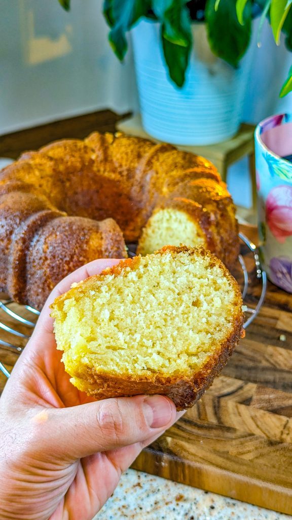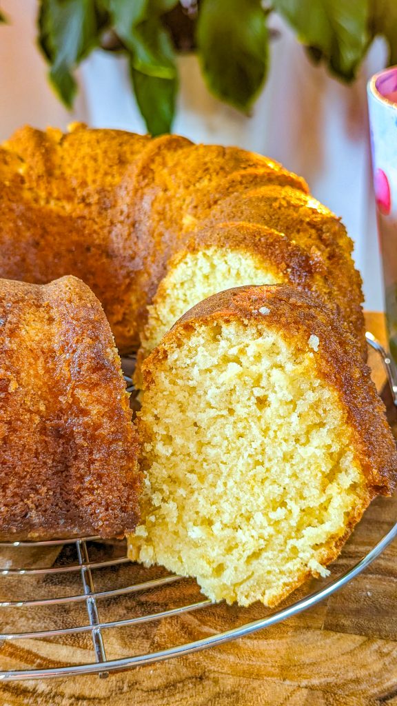 The secret trick for the perfect flavor is covering the cake with a buttery glaze and letting it soak. It infuses flavor and adds a lovely moistness to this cake recipe. You can add various toppings for a nice presentation. If you’re a huge fan of moist cakes like me, the Kentucky Butter Cake is your absolute favorite. The addition of butter and milk in the batter, as well as the glaze, makes the cake super moist and delicious. Making it is very easy. All you need to do is mix the wet and dry ingredients and bake it. Then, you prepare the glaze in a pot and pour it over the cooled cake.