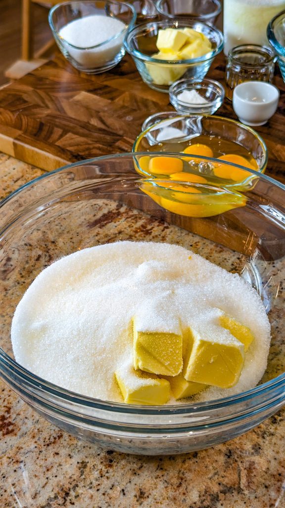 - In a second bowl, add butter and sugar. Beat with a handheld mixer until fluffy.