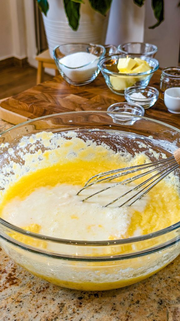 - Add the flour mixture into the eggs mixture gradually. Do this with the buttermilk mixture and mix well until incorporated.