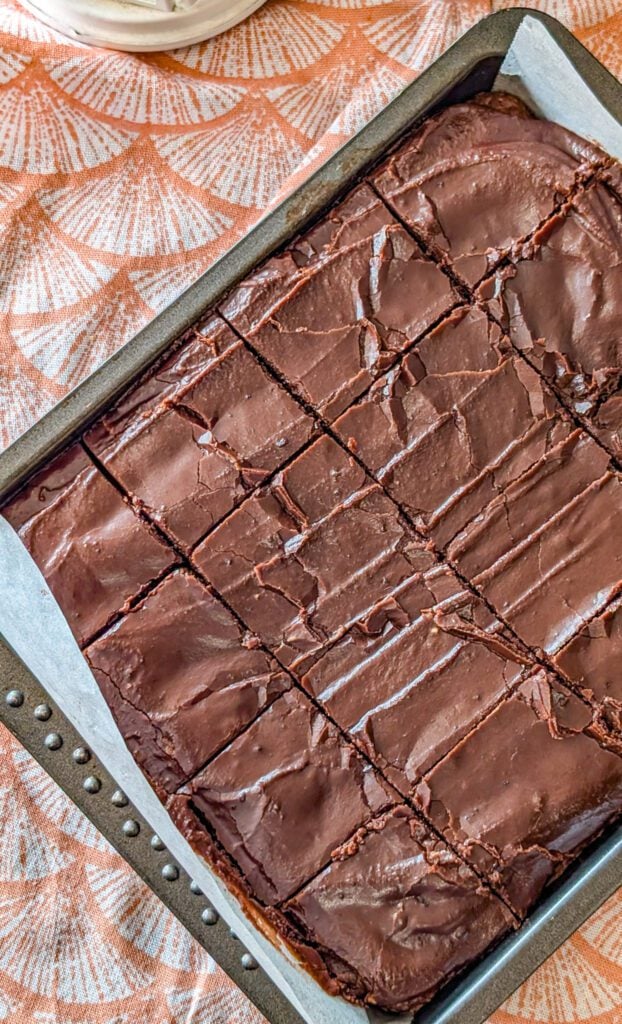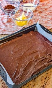 - Spread the frosting evenly over the warm brownies so some of it melts slightly into the top, creating a rich, fudgy layer.