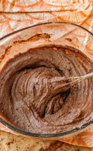 - Gradually add the cocoa powder and flour to the wet mixture, folding gently until the batter is smooth and even.