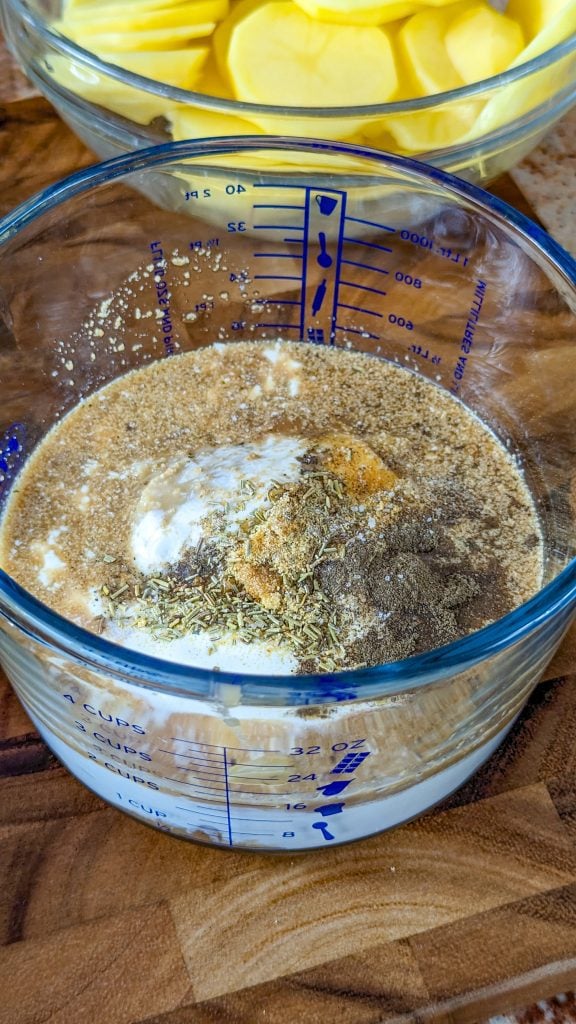 - 5 peeled, thinly sliced potatoes