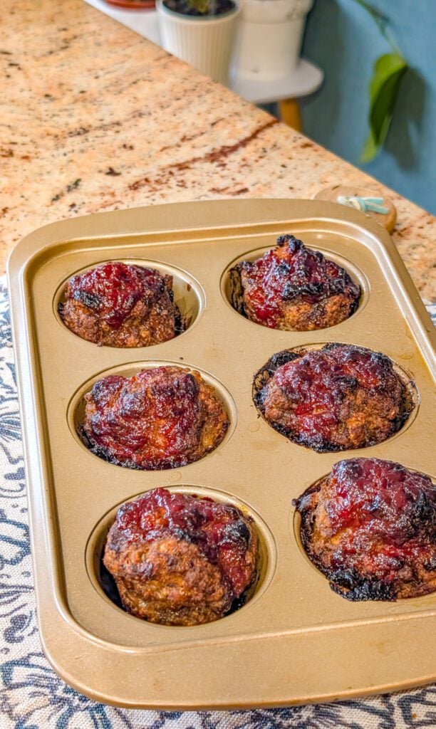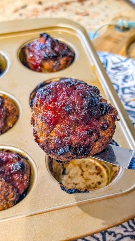 - Remove the pan from the oven and allow the mini meatloaf muffins to rest for 5 minutes before removing them from the pan. This helps them hold their shape.