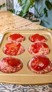 - Spoon a small amount of the glaze over the top of each meatloaf muffin, spreading it lightly so the tops are coated.