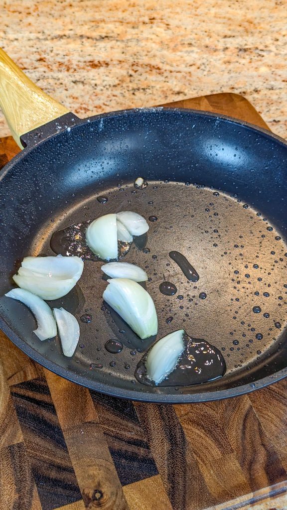 Heat another tablespoon of oil in the same skillet and cook the yellow onion for a couple of minutes, stirring often.