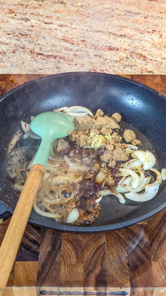 - Mix in the soy sauce, brown sugar and rice vinegar.