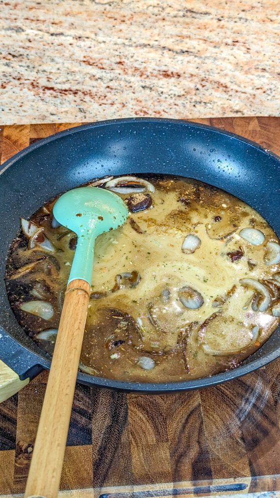 - Whisk the chicken broth and cornstarch in a clean bowl, then mix this into the skillet, cooking the mixture until thickened.