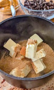 1. In a medium saucepan over medium heat, combine the butter, brown sugar, and vanilla extract. Heat until the butter is fully melted and the sugar has dissolved.