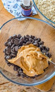 1. In a microwave-safe bowl, combine the chocolate chips and peanut butter. Heat in 30-second intervals, stirring between each, until the mixture is completely melted and smooth.