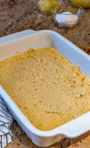 - Press the crust mixture firmly and evenly into the bottom of the prepared baking dish. Set aside.