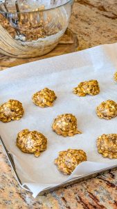 1. Drop rounded tablespoons of dough (or use a cookie scoop) onto the prepared baking sheets, spacing them about 2 inches apart.