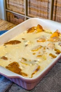 - Place the dish in the oven and bake for 30 minutes, or until the top is golden brown and set.