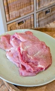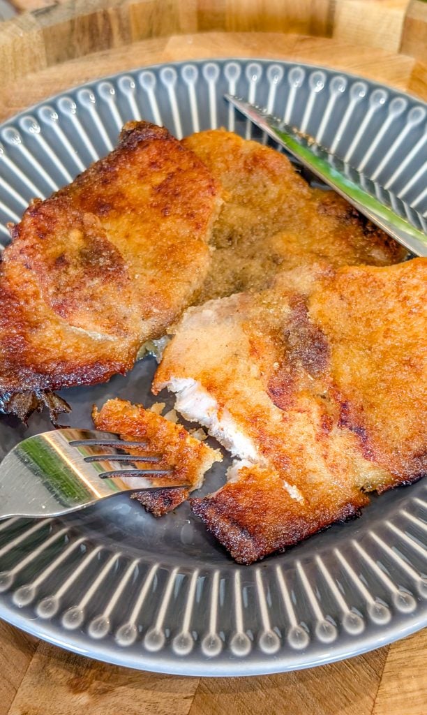 1. Pat the pork chops dry with paper towels. Brush each chop lightly with olive oil on both sides — this helps the coating stick and encourages browning.