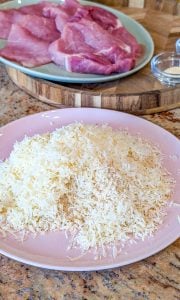 1. In a shallow bowl or dish, combine the Parmesan cheese, Italian breadcrumbs, black pepper, and garlic powder. Mix well.