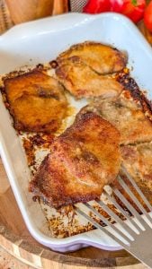To freeze: Place cooled pork chops in a freezer-safe bag with parchment between them. Freeze up to 2 months. Reheat from frozen at 375°F until warmed through.