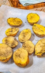 1. Bake for 25–30 minutes, flipping the potatoes halfway through cooking to ensure they turn golden brown and crispy on all sides.