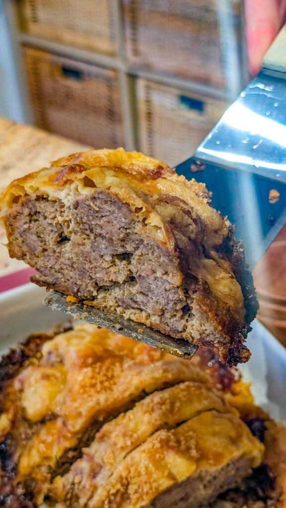 This meatloaf keeps well in the refrigerator for up to four days when stored in an airtight container. Leftovers make fantastic sandwiches for lunch, too. To freeze, wrap the cooked meatloaf tightly in plastic wrap and aluminum foil, then store in the freezer for up to three months. Reheat in the oven at 350°F until warmed through, or slice and microwave individual portions for a quick meal.