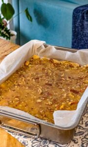 - Remove the pan from the oven and allow the bars to cool completely in the pan. This step helps the topping firm up for easy slicing.
