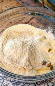 - Reduce the mixer speed and gradually add the flour. Continue mixing until the mixture forms coarse crumbs.