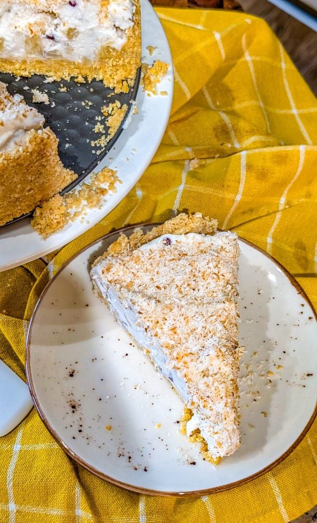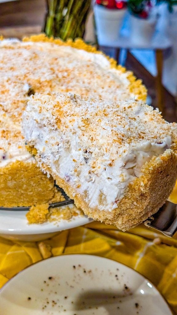 Swap the graham cracker crust for a vanilla wafer or coconut cookie crust for extra flavor. Add a splash of rum extract for a true piña colada vibe, or fold in crushed pineapple for more texture. You can even drizzle white chocolate on top for a decadent twist.
