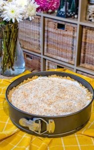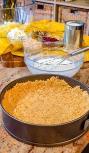 - In a medium bowl, combine the crushed graham crackers with enough melted butter to moisten the crumbs. Press the mixture firmly into the bottom and up the sides of a 9-inch pie pan to form the crust.