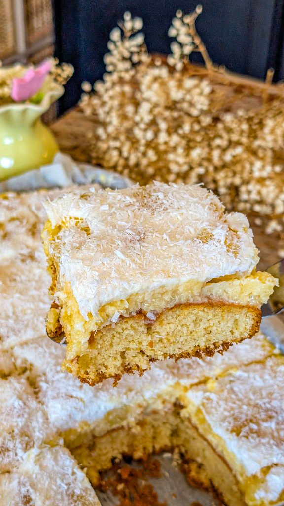 This recipe embodies the flavors and fun of a traditional piña colada in a dessert that’s simple to prepare and share, which is why I adore it. It’s flavorful, moist, and has a subtle, tropical sweetness that doesn’t overpower. The poke cake technique guarantees that the pineapple juice and coconut filling infuse the cake, keeping it incredibly soft and flavorful, and every bite strikes the ideal balance of creamy, fruity, and cake-y goodness.