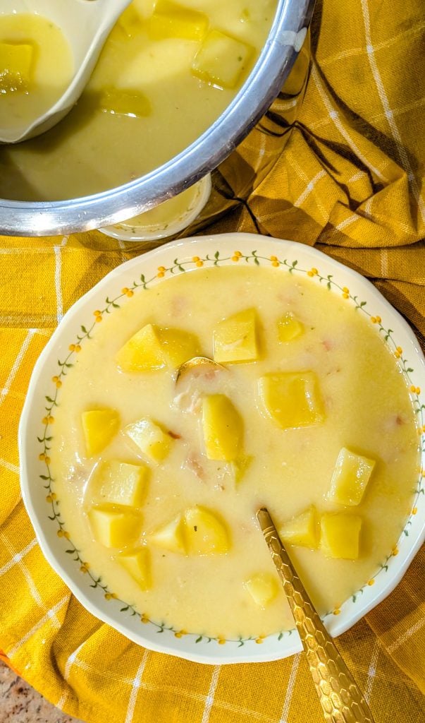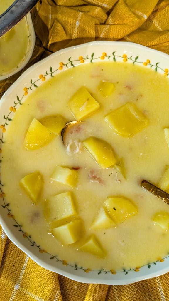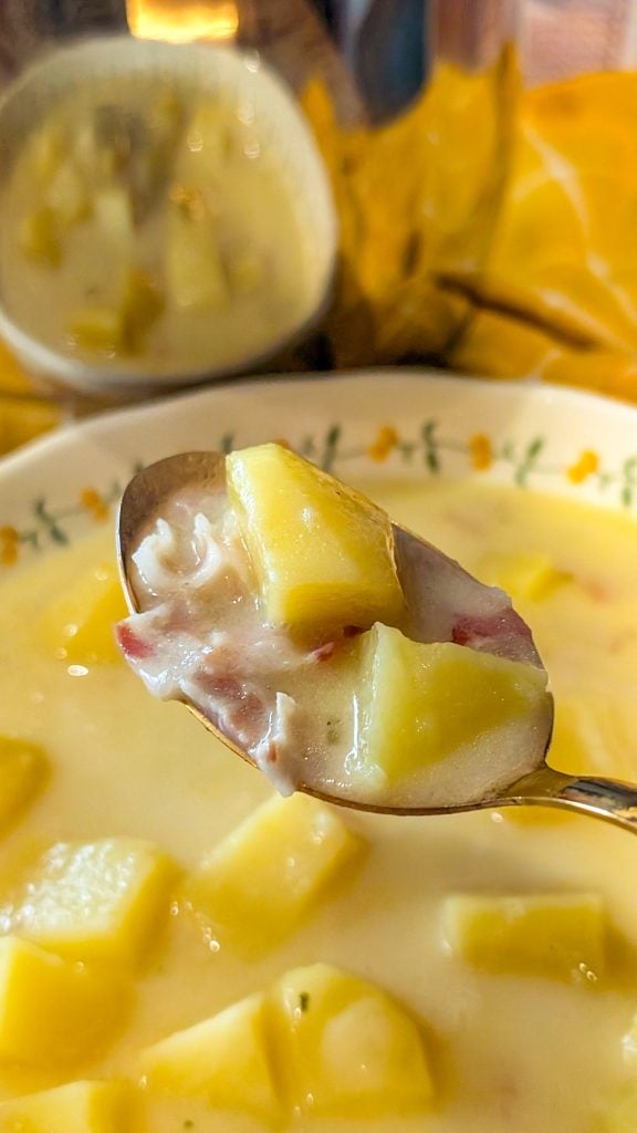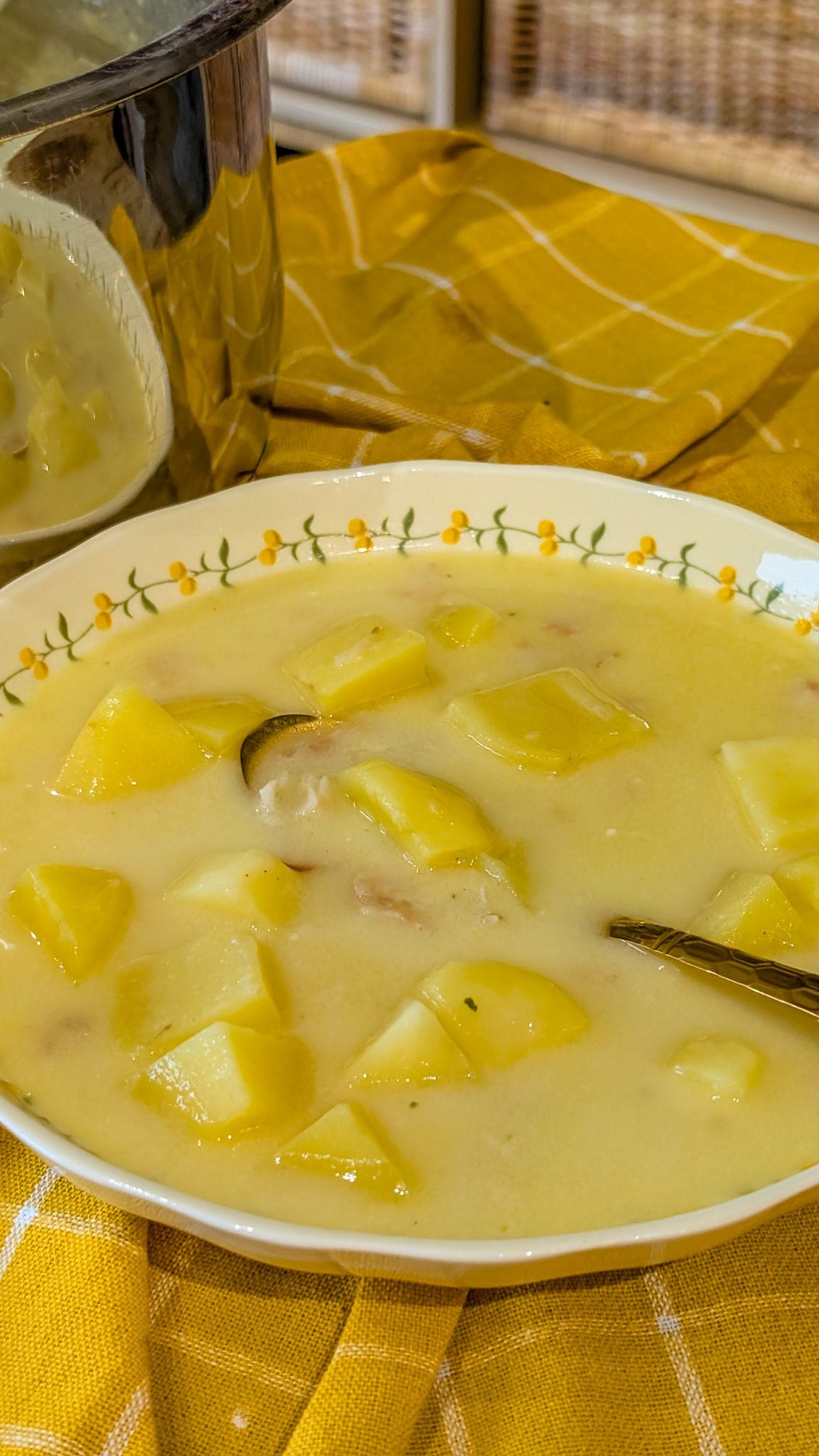 Whether it’s simmering away on a cold winter afternoon or gently bubbling in the slow cooker while you tackle a busy day, this soup is pure comfort food at its finest. Rich, velvety, and packed with tender potatoes, it’s the kind of meal that feels like a hug in a bowl.