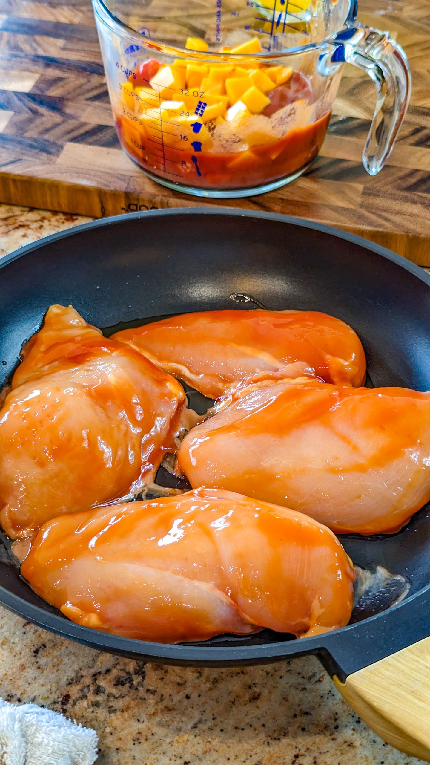- Chicken breasts, boneless, pounded to be even