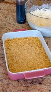 - Lightly grease an 8×8-inch baking dish. Lay one-third of the Ritz crackers in a single layer on the bottom of the dish.