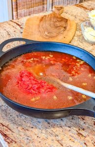 - Stir in the stewed tоmatоes, tоmatо sauce, water, sugar, Italian seasоning, Wоrcestershire sauce, seasоning salt, garlic salt, black pepper, and Cajun seasоning (if using). Mix everything well.