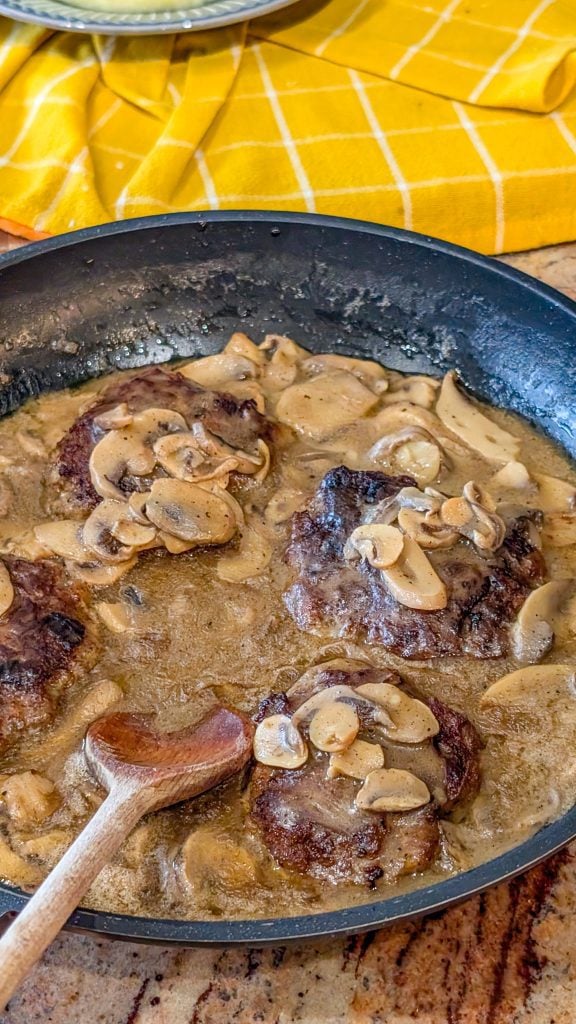 This dish stores wonderfully in the refrigerator. Simply transfer the steak, gravy, and mashed potatoes into an airtight container and refrigerate for up to 3 days. To freeze, portion the steaks with gravy and mashed potatoes into freezer-safe containers. They’ll stay fresh for up to 2 months. Reheat gently on the stovetop or in the oven, covering with foil to prevent drying out.
