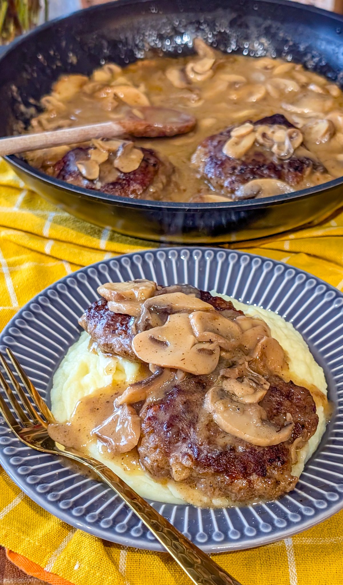 You can customize this Salisbury steak in several ways. Swap the mashed potatoes for mashed sweet potatoes or creamy polenta. Add Worcestershire sauce or red wine to the gravy for extra depth. For a lighter version, bake the patties instead of pan-frying, and use low-fat milk or Greek yogurt in the mashed potatoes. Herbs like thyme, rosemary, or parsley add a fresh flavor that pairs beautifully with the beef.
