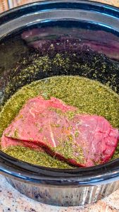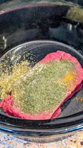 - Sprinkle the ranch, Italian dressing, and brown gravy packets evenly over the top of the roast.