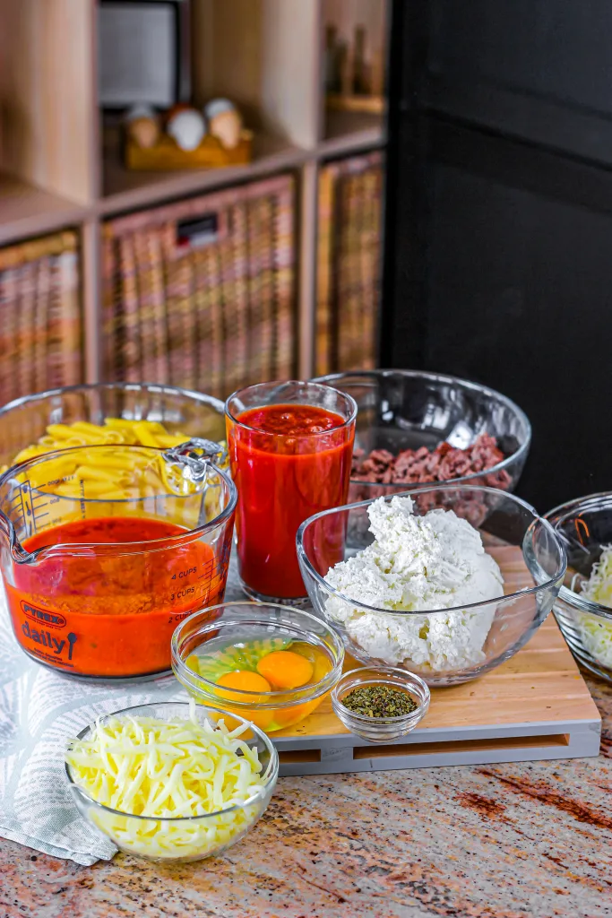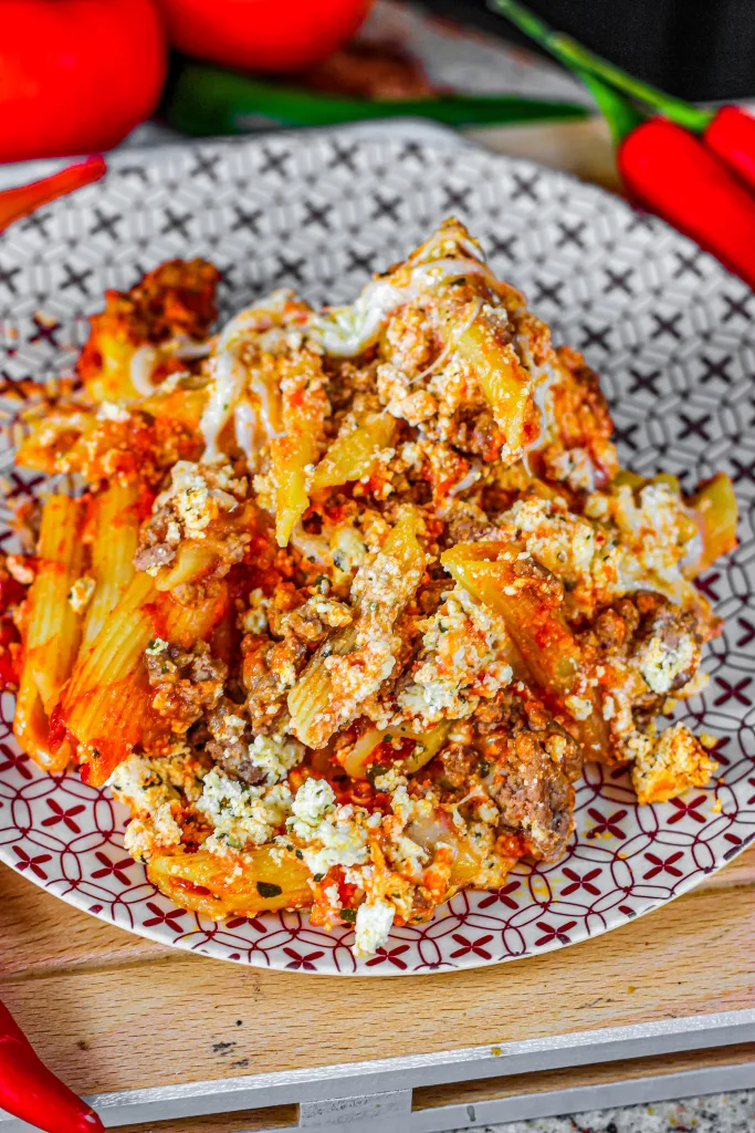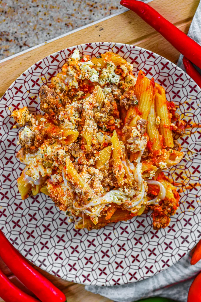 The result is a cheesy and saucy baked pasta with aromatic ground beef. You can use penne and ziti pasta for this recipe, so feel free to choose what is more convenient.