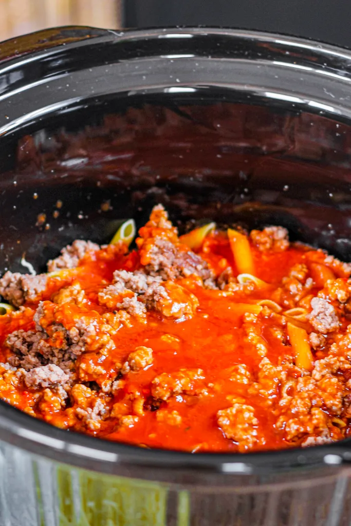 The slow cooker baked ziti is a simple and easy recipe that the whole family will love. Preparing pasta can be daunting, as you need to cook, drain, and prepare the other ingredients. With this recipe, you put the uncooked pasta into the slow cooker, and it simmers in the saucy filling. Cover all the pasta in sauce; otherwise, it will stay dry.
