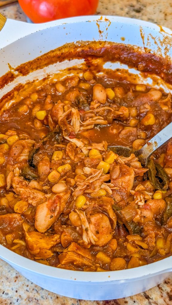 This chili keeps well in storage. After letting it cool fully, move it to an airtight container and keep it in the refrigerator for up to three or four days. It can be frozen for up to three months for extended storage. To preserve its creamy texture, just thaw overnight in the fridge and reheat slowly on the stove or in the microwave, stirring occasionally.
