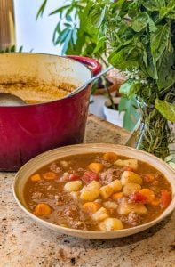 This stew stores beautifully. Keep leftovers in an airtight container in the refrigerator for up to 3–4 days. It also freezes exceptionally well—just portion it into freezer-safe containers, and it will last up to 3 months. When ready to eat, thaw overnight in the fridge and reheat gently on the stovetop or in the microwave until warmed through.