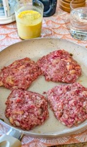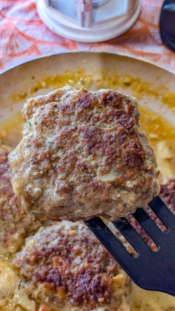 4. Heat a large skillet over medium-high heat and cook the patties until browned and cooked through, turning as needed. Remove the hamburger steaks from the skillet and set them aside.