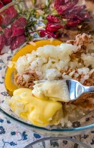 2. Add onion, flour, cornmeal, egg, mayonnaise, salt, and pepper. Mix until well combined.